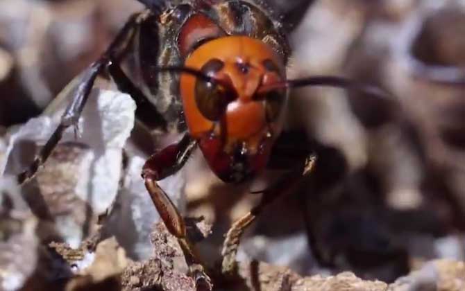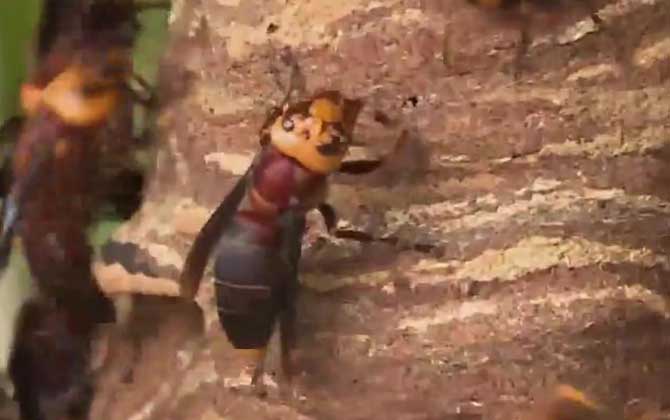 3、营巢性:人头蜂是营巢性昆虫,通常在土洞、灌木丛、高大树干等位置筑巢,筑巢材质主要是咀嚼干燥木材后形成的木浆,蜂巢外包裹有坚硬的巢壳,巢门通常在蜂巢下部。