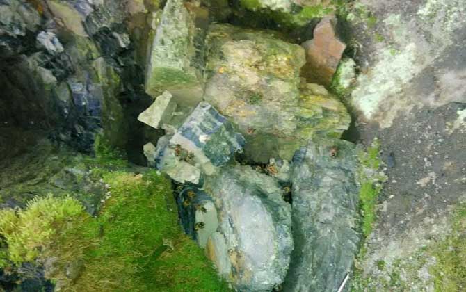 3、石洞蜂一定要先观察有没有其他出口,否则喷烟后蜂群可能从其他出口逃跑,另外喷烟量过大也可能将蜂群闷死在石洞中。