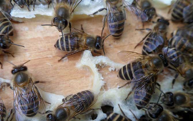 2、工蜂:工蜂在幼虫期前三天能吃上蜂王浆,之后只能以普通的花粉和花蜜为食,若工蜂从幼虫期开始便一直以蜂王浆为食也能发育成蜂王,例如失王后蜂群会用工蜂小幼虫急造王台。