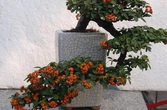 吉祥果盆景即火棘盆景树,它的果实成熟后红艳似火,光泽度非常强。而且观果期从秋到冬,果实也越来越红,即使经过风霜红果也灌满枝头,一直到来年春季才掉落。红彤彤的果实看起来非常喜庆、吉祥,也有着吉祥喜庆的良好寓意。