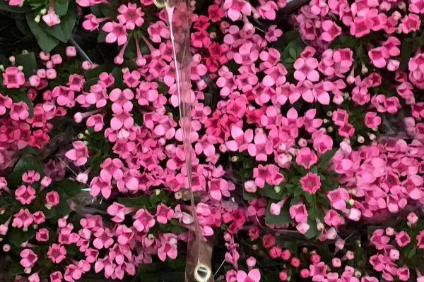 2、此时高脚杯状的小花绽放于枝叶间,花色为红色、白色、粉色等,具有极高的观赏价值,而且寒丁子花常出现新娘手捧花上。