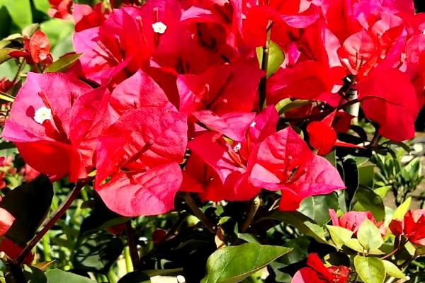 3、三角梅的枝条过多过密也会影响到营养的分散,不可促发花芽。养护期间要根据植株的形状不定期的疏剪去过密、多余的枝条。