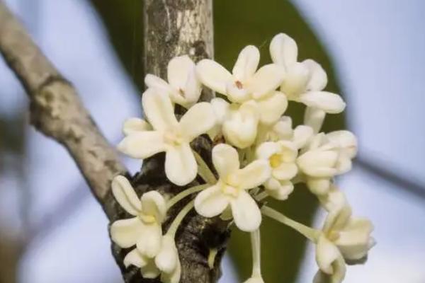 2、花朵在每年的9-10月份开放,花序为聚伞状,簇生于叶腋间,花色为白色、乳白色或黄白色。