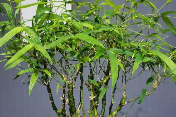 (5)越冬温度不得低于5℃,要保持盆土相对湿润,经常用清水喷洒叶片。生长期内,每半月施一次腐熟液肥和磷、钾肥,促进竹笋健壮和佛肚的形成。