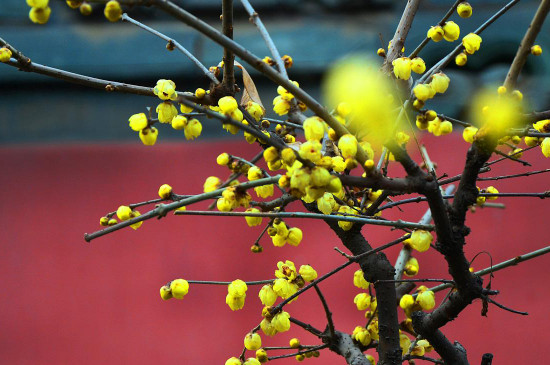 虎蹄梅又叫做十月梅,花朵的造型很像是虎蹄,花瓣较为圆润,花形较大,开花后花朵直径大约在2.2cm以上,花色为深黄色,里面的花蕊呈紫红色。
