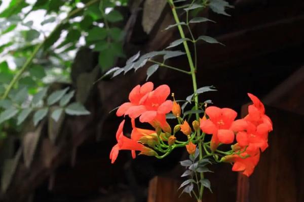 凌霄花每年在5~8月开花,具有着非常高的观赏价值,其实凌霄花也象征着敬佩、声誉,平时可以将凌霄花送给自己最尊敬的老师等人群,寓意着对他们的感激和敬佩,可让师生之情更加深厚。