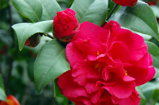 山茶花的花期在1~3月份,花瓣的形状为近圆形、卵形,边缘具有波浪的形状,花色为红色,长度为5~12厘米,宽度为4~5厘米。主要生长在海拔为1900~2600米的山谷沟壑两侧、潮湿背阳的地方。