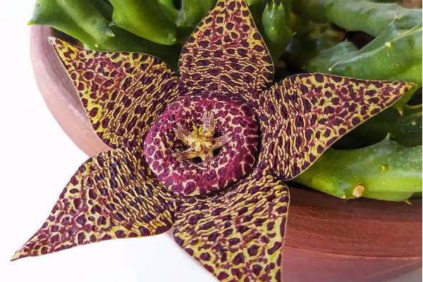 腐肉花又叫大王花,它开出来的花朵为肉质,花型硕大,上面密布白色的斑块,形态并不美观,不仅看上去邪恶,散发出的味道也很恶臭,令人感到绝望,花语为自我主张、病态的爱。