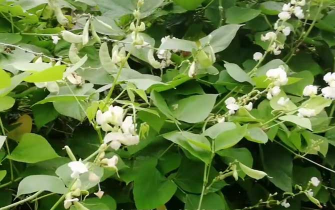 3、肥水管理:白扁豆定植缓苗后浇1次稀粪水以促进新根生长,前期要控制肥水,若肥水过多,蔓叶生长旺盛,开花结荚节位提高,花序数目减少,会形成中下部空蔓,结荚后应增加肥水,结荚盛期每采收1~2次就要追肥水1次。