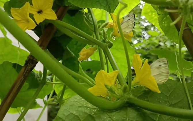 2、华南型:华南型黄瓜主要分布在中国长江以南及日本等地,茎叶较繁茂,果实小,嫩果绿、绿白、黄白色,味淡,熟果黄褐色、有网纹,代表品种有昆明早黄瓜、广州二青等。