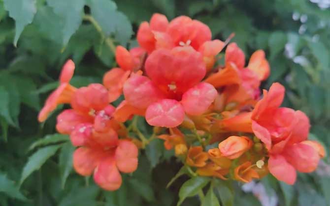 4、光照:凌霄花喜光照,耐阴,光照充足时长势旺,长期在荫庇环境下开花不良。