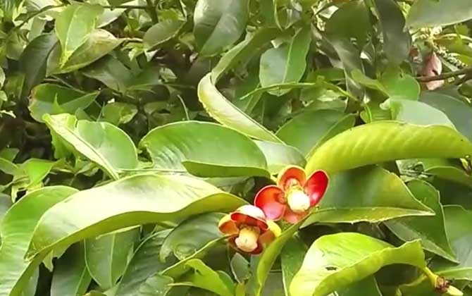 2、花竹果:花竹果是常见的一种山竹,果柄带红色,果皮红中带黑,果肉呈白色。